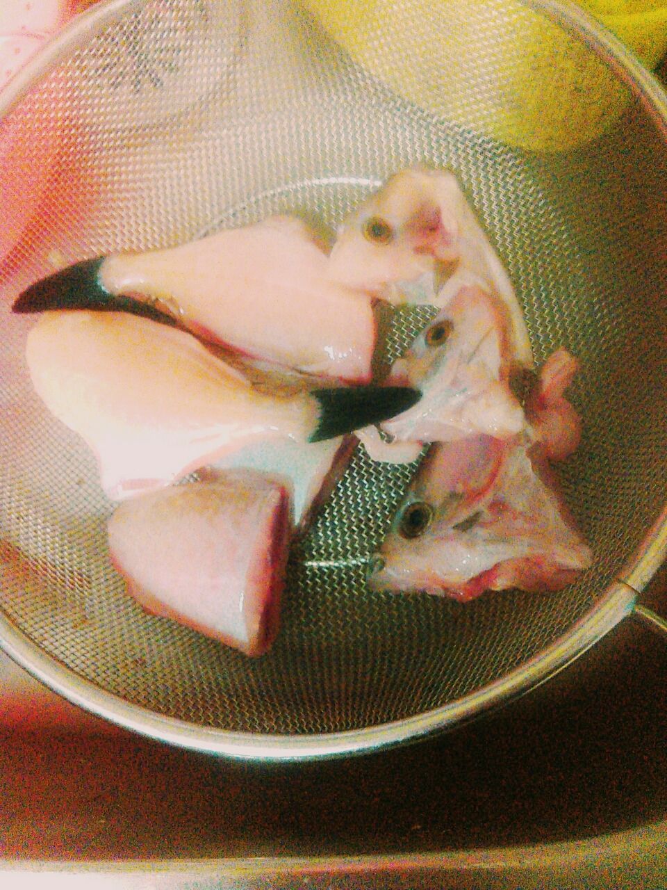 湯通しした頭と身を入れて沸騰させた後
